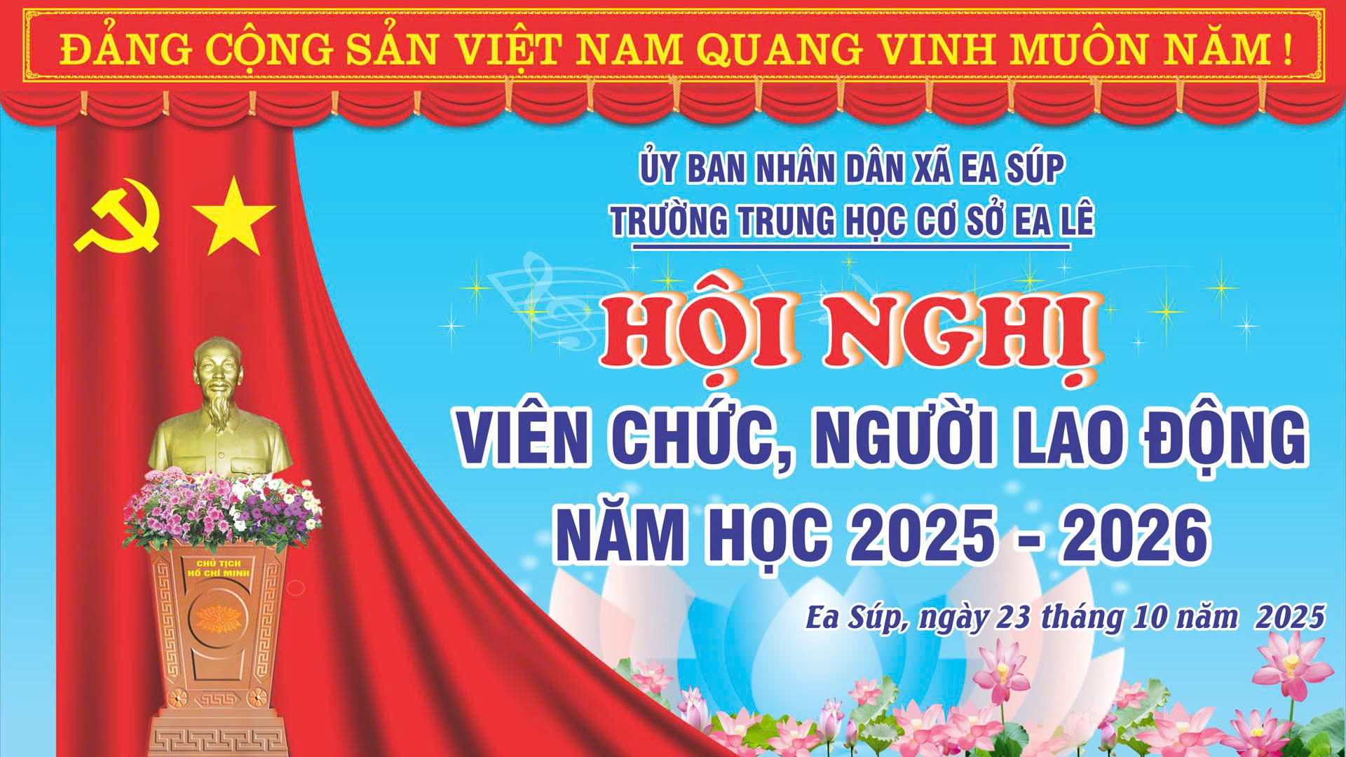 Chiều ngày 23/10/2025, Trường THCS Ea Lê đã tổ chức Hội nghị cán bộ, viên chức, người lao động, năm học 2025 – 2026. Hội nghị được tổ chức nhằm đánh giá kết quả thực hiện nhiệm vụ năm học 2024 – 2025, đề ra phương hướng nhiệm vụ năm học 2025 – 2026.